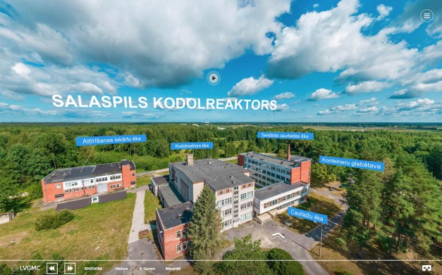 Pēc LATVIJAS VIDES, ĢEOLOĢIJAS UN METEOROLOĢIJAS CENTRA pasūtījuma izveidojām multimediju 360° virtuālu tūri pa Salaspils kodolreaktoru. Tā veidota no augstas kvalitātes 360 grādu panorāmas fotogrāfijām, kas papildinātas ar audio gidu latviešu un angļu valodās, vēsturiskajiem materiāliem – kino un foto arhīva hronikām, un darbinieku stāstiem. Virtuālā tūre latviski – https://latviainside.com/explore/tours/history/salaspils-reaktors Virtuālā tūre angļu valodā – https://latviainside.com/explore/tours/history/salaspils-reaktors-en